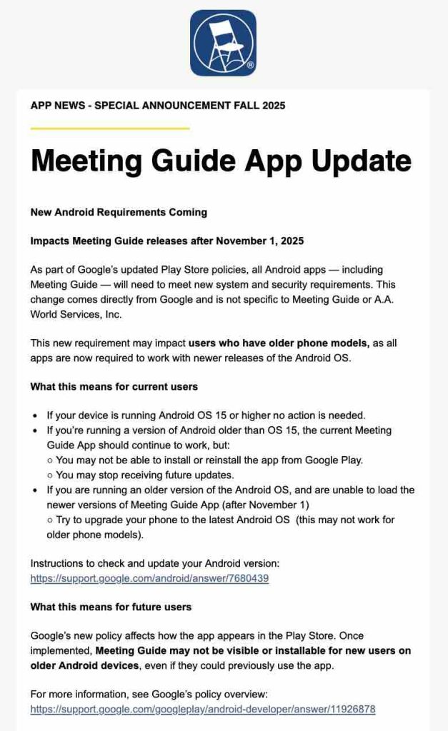 Meeting Guide App – New Google Requirements